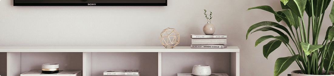 Beaucoup de gens demandent s'il est acceptable que le téléviseur soit plus large que le meuble. La réponse est non, assurez-vous que le meuble est plus grand afin d'éviter que votre téléviseur ne bascule pas. Faites également attention à la profondeur de l'étagère, car elle doit laisser suffisamment de place pour votre téléviseur et vos équipements supplémentaires. Outre la sécurité, un autre avantage offert par un meuble plus grand est l'option de rangement. Ajoutez des décorations, une astuce couramment utilisée pour intégrer la technologie dans une décoration intérieure chaleureuse.