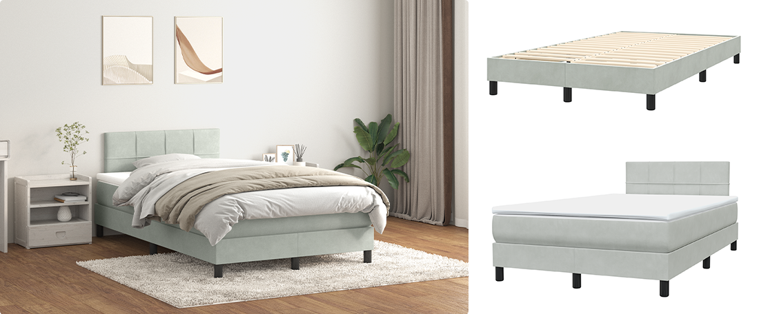 Cet ensemble de lit comprend un cadre de lit, un matelas à ressorts ensachés et un sur-matelas moelleux pour un confort total. Le cadre en velours ajoute une touche de confort, tandis que les ressorts ensachés offrent un soutien personnalisé et réduisent le transfert de mouvement. Le sommier à lattes offre une meilleure respirabilité, ce qui permet à votre matelas de rester frais. C'est l'ensemble parfait pour un sommeil réparateur.