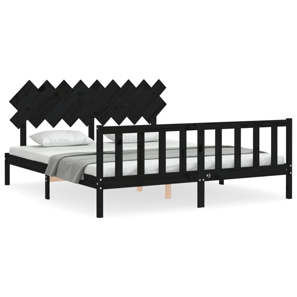 vidaXL Cadre de lit avec tête de lit noir Super King Size bois massif