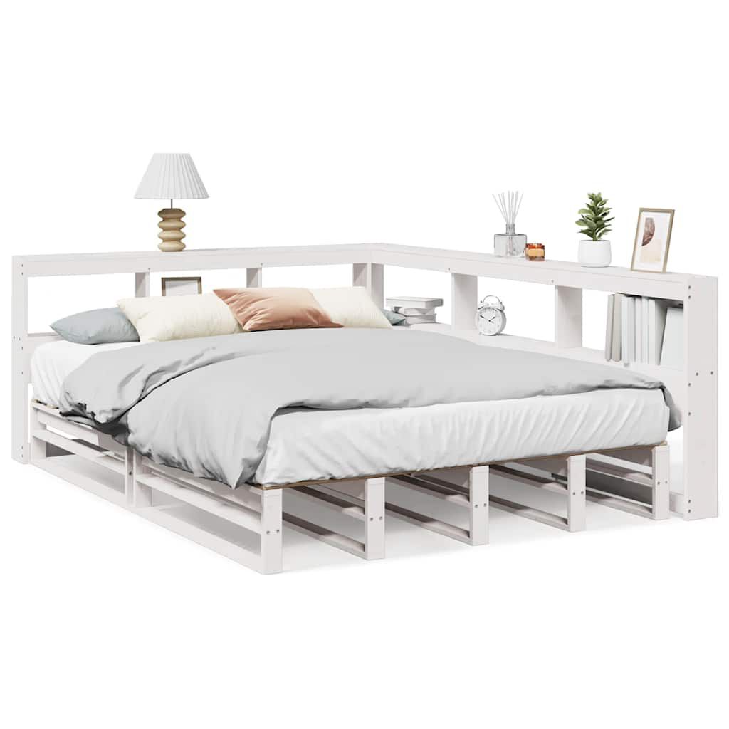 vidaXL Lit bibliothèque sans matelas blanc 160x200 cm bois pin massif